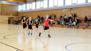 (GeRü) Die Vorzeichen am Sonntagmorgen standen aufgrund 3 verletzungsbedingter Spielerausfälle nicht gut. Klar war, dass man keinen Auswechselspieler zur Verfügung hatte und Torwart Kevin Keller daher auf dem Feld über 60 Minuten aushelfen musste. Doch als frischgebackener Meister fingen die Jungs mit breiter Brust, selbstbewusst und spielfreudig an. Schnell erarbeitete man sich einen 3 Tore Vorsprung. Die Tormaschinerie war nun angelaufen, die Abwehr um Kapitän Jannis Zörb stand gut und im Tor ließ Samir Taherie nicht viel anbrennen. Mit einem 7:0 Lauf gingen die Jungs nach 22 Minuten bereits deutlich mit 18:5 in Führung. Auch Torwart Kevin Keller zeigte mit einem schönen Tor seine Torjägerqualitäten.
